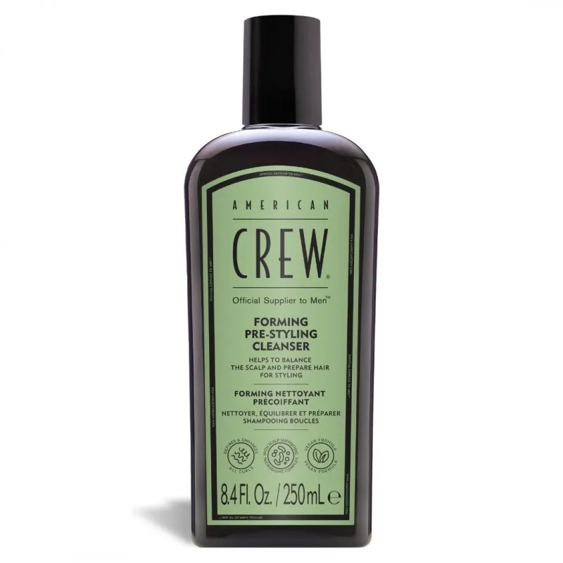 American Crew Forming Pre-Styler Shampoo to szampon łączący funkcję oczyszczania i przygotowania włosów do stylizacji. Usuwa zanieczyszczenia, nadmiar sebum i pozostałości kosmetyków. Dodaje tekstury i objętości, ułatwiając układanie fryzury. Nawilża i zapobiega przesuszeniu włosów oraz skóry głowy.