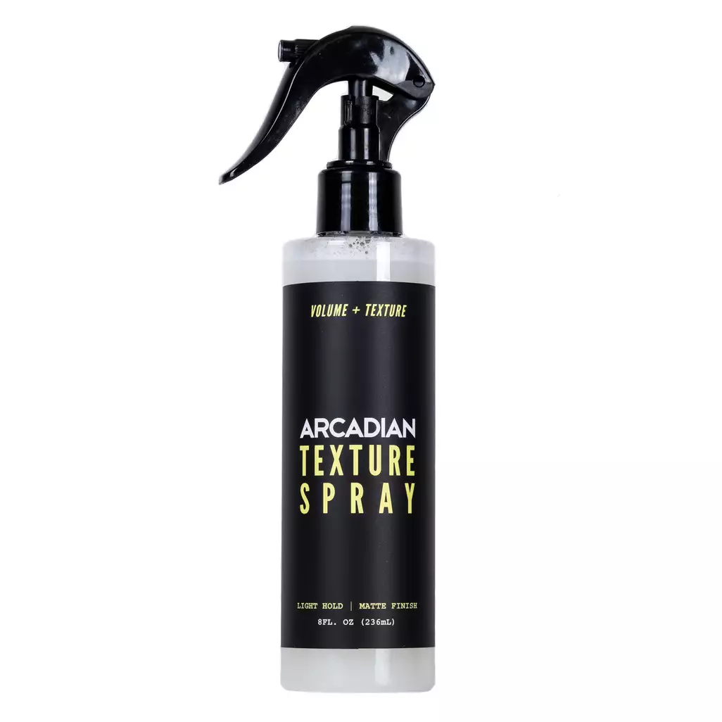 Arcadian Texture Spray to produkt do wstępnej stylizacji włosów . Dodaje fryzurze objętości i tekstury, zapewniając przy tym lekki oraz elastyczne utrwalenie. Produkt należy nałożyć na wilgotne włosy, a następnie za pomocą suszarki oraz szczotki do włosów suszyć, aż włosy będą całkowicie suche. Produkt zapewnia całkowicie matowe wykończenie.
