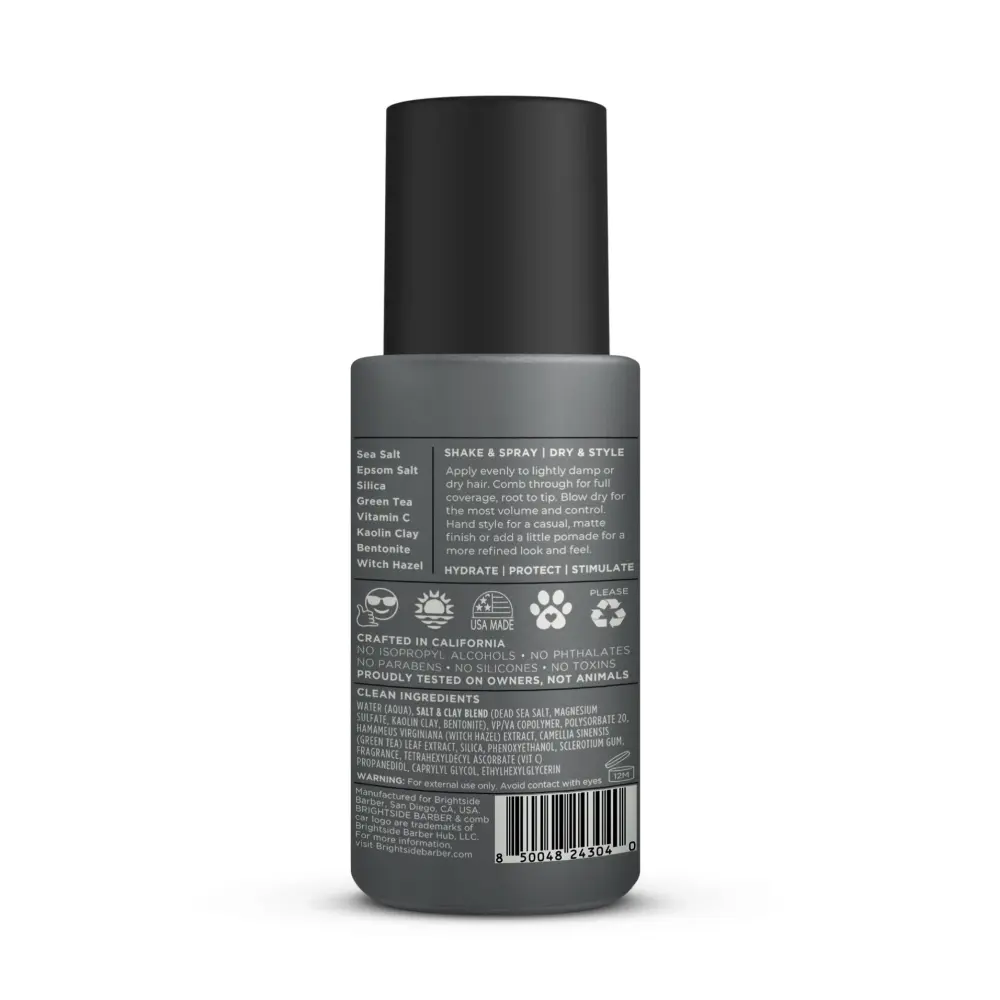Spray do włosów z solą morską Brightside nie zawiera alkoholu, parabenów ani toksycznych substancji chemicznych, dzięki czemu jest bezpieczny i delikatny nawet dla wrażliwej skóry głowy. Gęsta, skoncentrowana formuła gwarantuje wysoką wydajność i długotrwały efekt stylizacji.