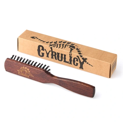 Zamiast klasycznej szczeciny z dzika zastosowaliśmy nowoczesną szczecinę z włókien nylonowych. Jest tak samo skuteczna jak szczecina z dzika, ale pozbawiona jej wad: nie wykrusza się, nie pochłania kosmetyków, nie wykrusza brody i nie stanowi pożywki dla bakterii. Starannie dobrany rozstaw szczeciny w pięciu rzędach pozwala skutecznie rozczesywać nawet gęsty zarost, bez ciągnięcia i szarpania.