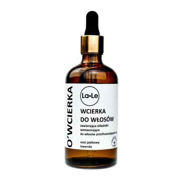 Wcierka na bazie octu jabłkowego z dodatkiem hydrolatu oraz olejku z lawendy. Szczególnie polecana do włosów przetłuszczających się oraz w celu wzmocnienia włosów.