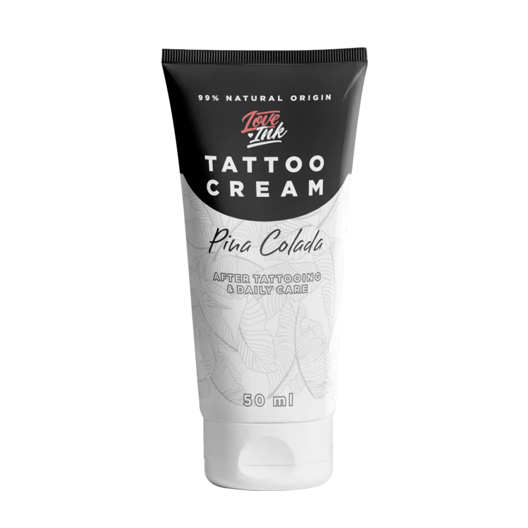 Loveink Tattoo Cream to prawdziwy agent do zadań specjalnych wśród kosmetyków do tatuażu. Aż 9 składników aktywnych, wyselekcjonowanych w trosce o najwyższą skuteczność w trakcie gojenia i w codziennej pielęgnacji tatuażu.