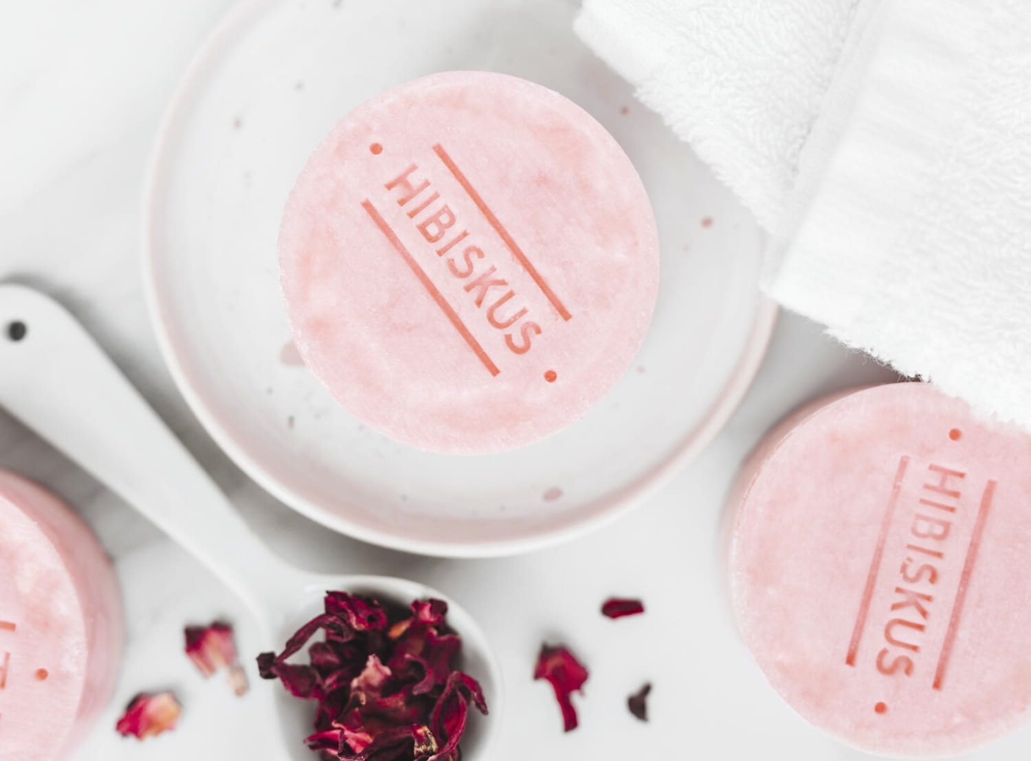 Hibiskus to wegańska (potwierdzone certyfikatem V-Label Vegan), poręczna, odżywcza, wydajna i multifunkcyjna, doskonale oczyszczająca kostka myjąca do ciała oraz włosów.