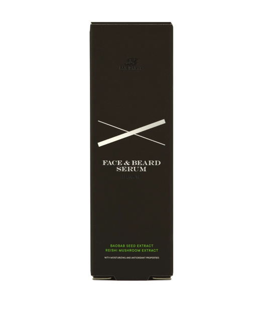 Nawilżające serum do skóry i zarostu z linii Black to zaawansowany produkt o lekkiej, niezwykle skutecznej formule o wielokierunkowym działaniu substancji aktywnych. Kompozycja naturalnych składników intensywnie odżywia, wzmacnia i nawilża brodę i skórę twarzy. Bogaty w proteiny ekstrakt z nasion baobabu wzmacnia włosy i barierę hydrolipidową skóry, dzięki czemu ogranicza utratę wody z naskórka. Serum nakierowane jest przede wszystkim na pielęgnację skóry twarzy, będącej fundamentem zdrowego, zadbanego zarostu. Właśnie dlatego, formuła została wzbogacona także o niacynamid (witaminę B3), który nie tylko reguluje produkcję sebum, ale również aktywnie działa zmniejszając przebarwienia i uelastycznia skórę twarzy. Właściwości nawilżające i wygładzające wykazuje również ekstrakt z grzybów Reishi, będący adaptogenem i antyoksydantem, a co za tym idzie – wraz z baobabem – spowalnia pojawianie się oznak starzenia skóry. Serum wzbogacone zostało również o mieszankę naturalnych olejów: abisyńskiego, arganowego i ze słodkich migdałów oraz masło mango, które są bogate w nienasycone kwasy tłuszczowe i witaminy. Forma emulsji sprawia, że serum błyskawicznie się wchłania. Produkt posiada delikatny świeży zapach oparty na aromacie cytrusów, uzupełniony ostrością pieprzu, kardamonu i muszkatołowca. W celu osiągnięcia najlepszych efektów serum należy stosować rano i wieczorem, na oczyszczoną twarz i zarost, jako samodzielny produkt lub uzupełnienie rutyny pielęgnacyjnej.