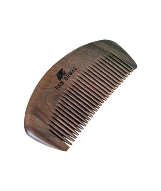 Drewniany grzebień do brody i wąsów. Grzebień został wykonany z drewna cedrowego, dzięki czemu posiada naturalny, delikatny zapach. Drewno ma właściwości antystatyczne, dzięki czemu grzebień wygładza zarost i zapobiega jego puszeniu się. Zęby grzebienia są delikatne dla skóry twarzy, dzięki czemu powinien się sprawdzić również u posiadaczy skóry wrażliwej lub problematycznej. Grzebień wygodnie leży w dłoni, jest idealnym rozwiązaniem jeśli chcesz przeczesać brodę w ciągu dnia. Na uchwycie zlokalizowany jest grawer z logo marki.