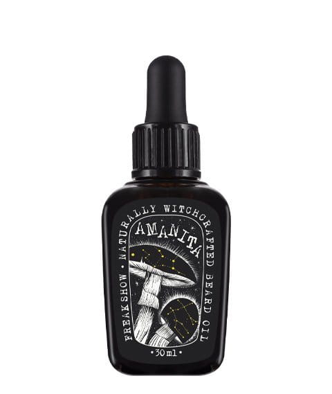 Olejek do brody Freak Show Amanita to odżywczy kosmetyk do pielęgnacji zarostu, bazujący na naturalnych składnikach. Zawarte w nim oleje ze słodkich migdałów i jojoba poprawiają kondycję brody i skóry twarzy, regenerują i zabezpieczają zarost. Olej arganowy jest naturalnym antyoksydantem i ogranicza łamliwość włosów. Mimo bogatego składu, olejek posiada lekką formułę, która szybko się wchłania i nie pozostawia nieprzyjemnego filmu. Olejek do brody Freakshow to oryginalna kompozycja bazująca na nutach piżmowo-kadzidlanych, przełamanych wetiwerem, akordem suszonych owoców i drzewa agarowego (oud) oraz akcentem imbiru i skóry. Butelka z ciemnego szkła z wygodną pipetą, pozwala na bezproblemową aplikację, a sam kosmetyk dzięki ograniczonemu dostępowi światła na dłużej zachowuje swoje właściwości.