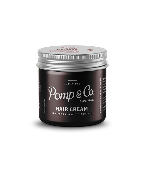 Pomp & Co. Hair Cream, to produkt na bazie wody. Oferuje średni chwyt oraz matowe wykończenie. Produkt charakteryzuje bardzo łatwą aplikacją i doskonałą teksturą. Krem zawiera wosk pszczeli, wazelinę i cerezynę, przez co gwarantuje doskonałe utrwalenie fryzury o różnej długości. Dzięki glince porcelanowej (kaolin) włosy mają zapewnioną ochronę przed nadmierną łamliwością i wypadaniem. Białka keratyny w połączeniu z lanoliną sprawiają, że uszkodzona struktura włosów pozostaje odbudowana i zyskuje elastyczność. Zapach kremu to świeże nuty wody kolońskiej.