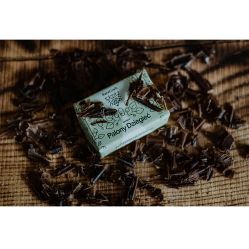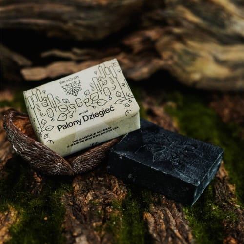 Mydło Palony Dziegieć to produkt do mycia i pielęgnacji skóry, który dzięki połączeniu z wyciągiem z dziegciu brzozowego staje się kosmetykiem wielozadaniowym. Jego autorska receptura, wzorowana na XIX wiecznych przepisach zachodnich mydelników, zapewnia zachowanie pierwotnych właściwości wszystkich składników zawartych w mydle. Rzemieślnicze wykonanie w podkrakowskiej manufakturze mydła sprawia, iż jest to produkt wyjątkowy i jedyny w swoim rodzaju. Do wykonania tego produktu użyto naturalnych składników najwyższej jakości. Mydło Palony Dziegieć zapakowane jest w papierowe, ekologiczne opakowanie. Waga pojedynczego mydła to 110g.