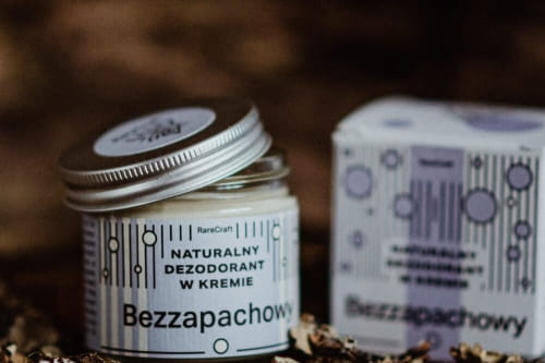 Bezzapachowy dezodorsnt to polski produkt marki RareCraft. Zawiera naturalne składniki wysokiej jakości, które pozbywają się przykrego zapachu i pochłaniają wilgoć bez blokowania gruczołów potowych. Nie zawiera substancji zapachowych i olejków eterycznych dlatego jest idealny dla osób ze skłonnością do alergii. Sprawdzi się za równo u mężczyzn jak i u kobiet. Jego bezwonny skład zapewnia dyskretną ochronę przed poceniem, dając uczucie komfortu przez cały dzień. Idealne rozprowadzenie na skórze pach jest możliwe dzięki delikatnej konsystencji dezodorantu. Produkt nie zawiera sztucznych konserwantów ani soli aluminium, jest w pełni naturalnym i wegańskim kosmetykiem. Opakowanie jest szklane z metalową zakrętką, co zapewnia długą trwałość produktu. Waga pojedynczego dezodorantu to 60ml. Przeznaczony do wszystkich rodzajów skóry, również do skóry delikatnej i wrażliwej.
