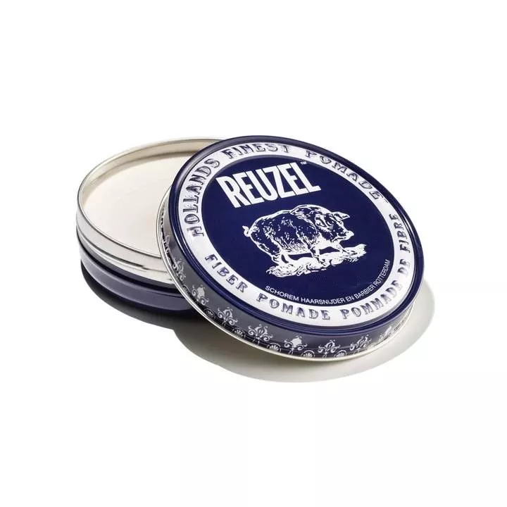 Reuzel Fiber Pomade, to granatowa włóknista pomada, która zapewnia teksturę z mocnym, ale elastycznym utrwaleniem o niskim połysku.